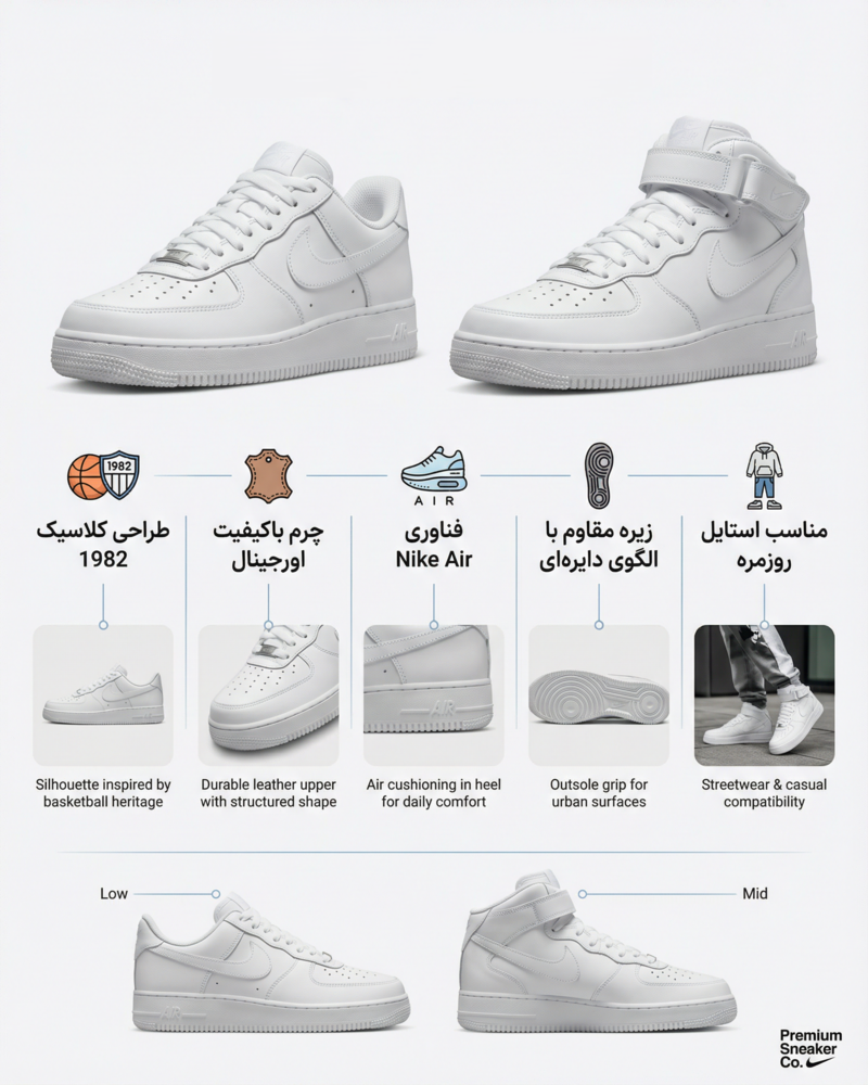 تفاوت Air Force 1 Low و Mid | کدام برای شما مناسبتر است؟